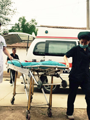 一.昔阳县正规救护车长途护送告诉您Heimlich手法(又称腹部手拳冲击法)1.成人方法(清醒病人):(1)救援人员站在病人身后,用手臂环绕病人的腰部;(2)抢救者一手握拳,将拇指侧方放在患者胸廊下和脐上腹部;(3)另一只手紧握拳头,迅速向上重复冲击,直至异物排除。2.婴儿方法:让病人平躺在坚硬的地面或床板上,面部向上,救援人员跪着或站在脚边。或救援人员坐着,让孩子骑在大腿上,背靠救援人员,用中指或